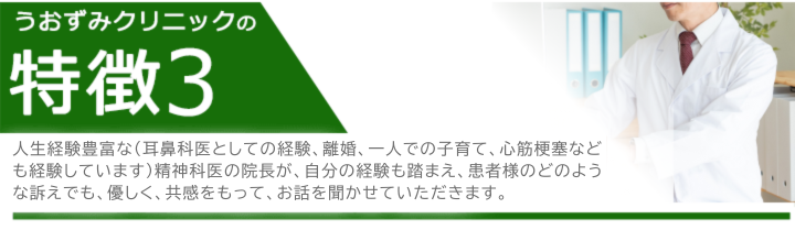 本人のお話しされたいことは、本人が直接治療と関係ないと思われても、病気や治療と関係していることが多いため、院長が時間をかけて、お話をお聞きします。そのため、カウンセラーはおいておらず、余分な料金も必要ありません。